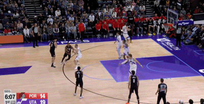 对阵爵士,3分1助1断1帽3失误6犯规